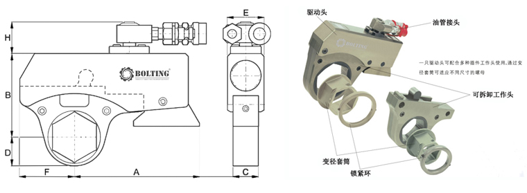 產品的選取依據螺栓鎖緊和拆松扭矩而定,扭矩值會因螺栓直徑和強度等級不同而有所變化。 |