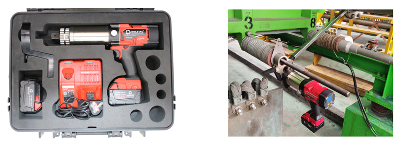 其次,同步預(yù)緊時(shí)應(yīng)使用同一廠家生產(chǎn)的相同型號(hào)鋰電扭矩扳手,這樣可以保證誤差最小,螺栓預(yù)緊力均勻分布。