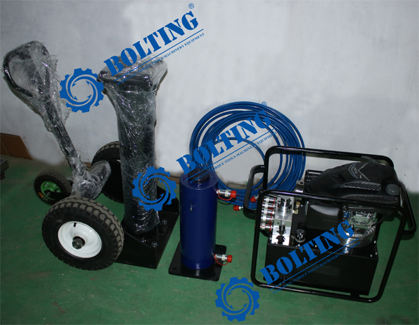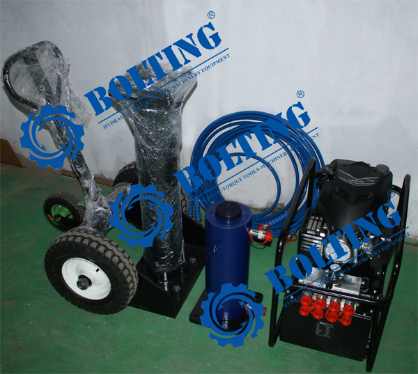 近日為河南某重工企業(yè)定制的移動式液壓駕車機(jī)準(zhǔn)備發(fā)貨,因客戶現(xiàn)場工況受限,采用汽油發(fā)動機(jī)動力液壓泵作為動力源,配備移動駕車機(jī),50T通用型雙作用液壓千斤頂和10m的雙聯(lián)液壓油管,簡便快捷的解決了重物頂升問題。